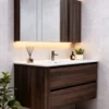 De onderkast is opgebouwd uit hoogwaardig 15 mm melamine gecoat MDF. Dit materiaal is ideaal voor de badkamer: stevig, vormvast en goed bestand tegen vocht en temperatuurschommelingen. Het walnootdecor blijft mooi van kleur en structuur, ook bij regelmatig schoonmaken.