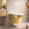 Het Hangend Toilet Croco Goud/Wit Livorno van Sanimaster is een luxe toevoeging aan elke moderne badkamer. Met zijn unieke crocostructuur in een opvallende gouden kleur, gecombineerd met wit, biedt dit toilet een stijlvolle en elegante uitstraling. Het hoogwaardige keramiek waaruit het toilet is vervaardigd, zorgt voor duurzaamheid en een langdurige schitterende afwerking.