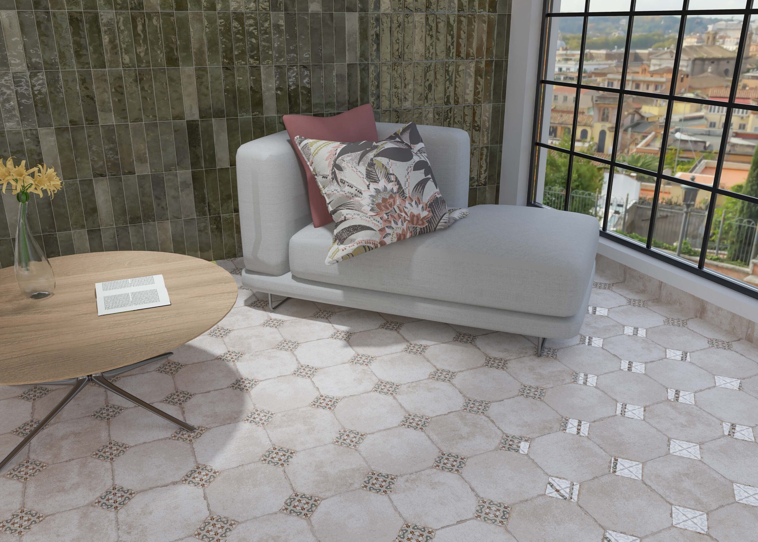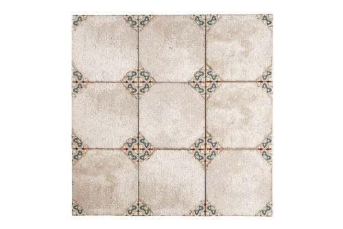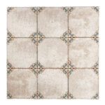 Met de vloer- en wandtegel grijs vintage met groene hoekdecor 22,5×22,5 cm – serie Cezanne geef je je ruimte direct een bijzondere, doorleefde uitstraling. De zachtgrijze basis met subtiele vintage look vormt een rustige ondergrond, terwijl de gedecoreerde groene hoeken voor een speels effect zorgen. Leg je deze porseleinen tegels tegen elkaar, dan ontstaat er een stijlvol patroon met een knipoog naar klassieke Portugese en Franse patroontegels.
