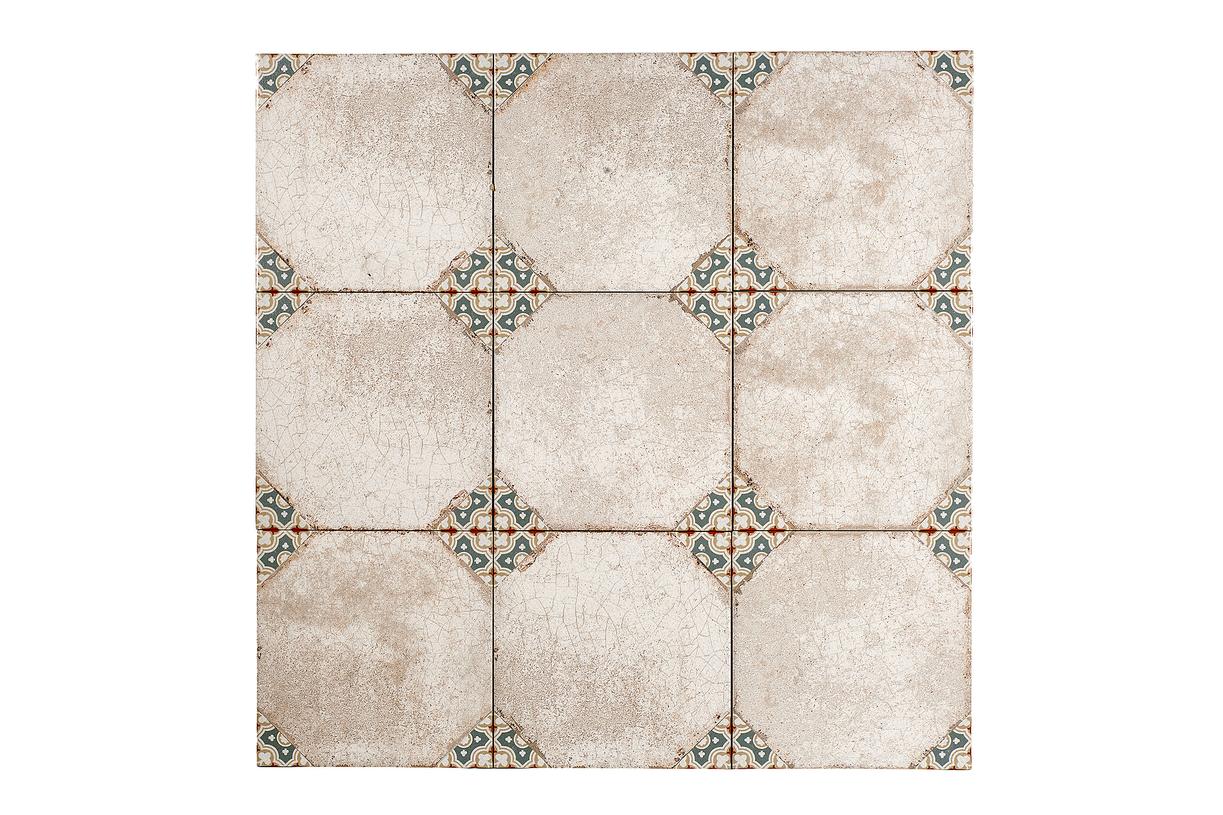 • Vloer- en wandtegel grijs vintage met groene hoekdecor 22,5x22,5 cm  – serie Cezanne
