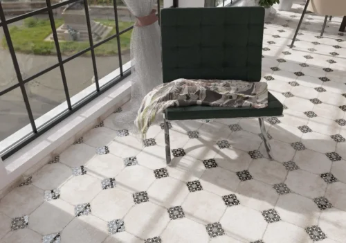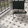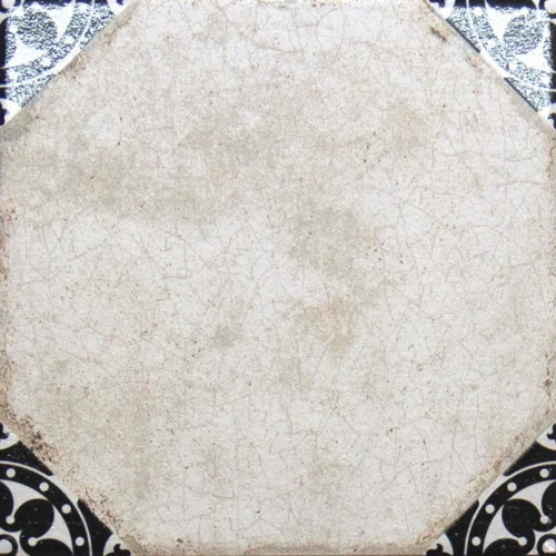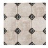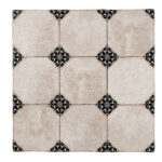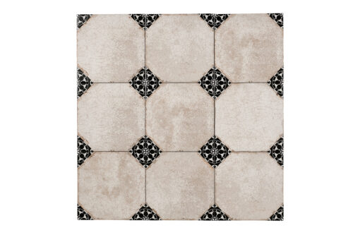 Met de vloer- en wandtegel grijs vintage met zwarte hoekdecor 22,5×22,5 cm – serie Cezanne haal je een tegel in huis met een stoere, klassieke uitstraling. De vergrijsde basis oogt doorleefd en warm, terwijl de zwarte hoekdecor-tekening voor een grafisch effect zorgt. Wanneer je de porseleinen tegels tegen elkaar legt, ontstaat er een karaktervol patroon dat doet denken aan oude patroontegels uit historische panden.