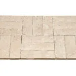 Deze beige Arans-tegel heeft een elegante, rustige uitstraling door zijn natuursteenachtige patronen. In het oppervlak zie je subtiele schakeringen van licht beige, crème en zandkleur, waardoor de tegel veel diepte krijgt zonder onrustig te worden. De matte afwerking versterkt het natuurlijke karakter en voorkomt hinderlijke glans.
