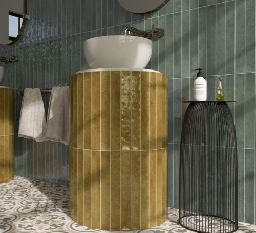 Het slanke formaat van 5×40 cm zorgt voor een modern en speels lijnenspel op de wand. Daarmee is deze tegel perfect voor creatieve legpatronen zoals visgraat, verticaal, horizontaal of halfsteens. Of je nu één wand wilt laten knallen of juist alleen een subtiele kleurzone wilt maken: met deze mango wandtegel creëer je eenvoudig een look die bij jou past.