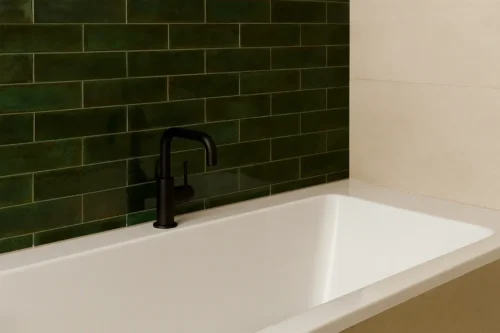 De wandtegel bosgroen 6,5×25 cm – serie Brunei brengt meteen diepte en sfeer in je interieur. De rijke, bosgroene kleur doet denken aan een groene woudrand: vol, warm en toch rustig. Ideaal als je een natuurlijke, chique basis wilt creëren in je badkamer, toilet, keuken of hal.