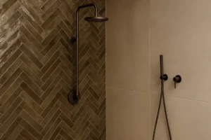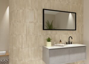 Grote wandtegels in beige, greige, taupe of bruin vormen de ideale basis voor een warme en tijdloze uitstraling. Ze brengen rust in de ruimte en combineren moeiteloos met wit sanitair, hout of natuursteen.