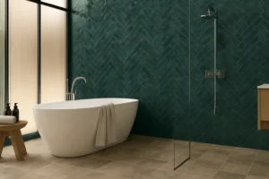 Accentkleuren geven de ruimte persoonlijkheid. Groene wandtegels zorgen voor frisheid en natuurlijke rust, van zacht saliegroen tot diep olijfgroen. Blauwe tegels brengen een verzorgde, luchtige sfeer. Poederblauw oogt zacht en licht, terwijl diepblauw elegantie en diepte toevoegt.